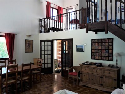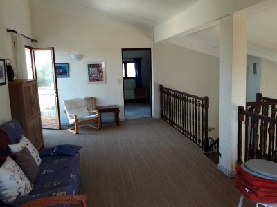 Im Wohnzimmer stehen den Gästen Spiele und Reiseinformationen zur Verfügung. Vom Wohnzimmer gelangt man zur Südterrasse mit Garten, Schwimmbad und gemauertem Grill. Wohnzimmer, Galerie und Küche sind groß genug, um auch bei Regen sehr schöne Tage im Haus verbringen zu können.